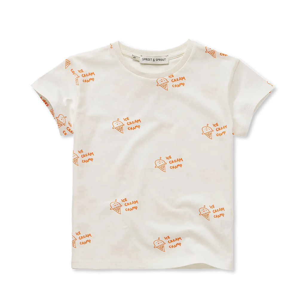 Vrolijke unisex T-shirt met ijsjesprint in off-white van Sproet & Sprout